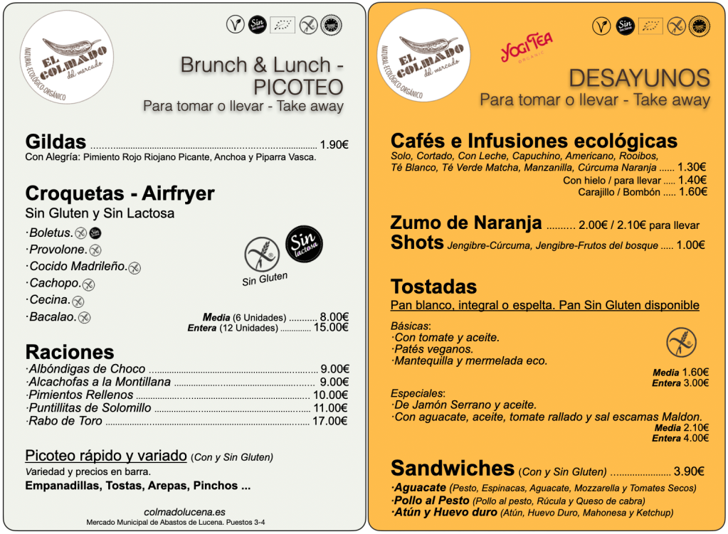 Ubicado en el Mercado Municipal de Abastos de Lucena con fácil acceso y aparcamiento gratuito. El Colmado del Mercado es un espacio dedicado a la alimentación sostenible y saludable. Un establecimiento donde encontrarás productos Ecológicos, de Kilómetro 0, Sin Gluten, Veganos o adaptados a diversas intolerancias. Además, combinamos tienda y zona degustación para disfrutar de momentos únicos en buena compañía y picoteo saludable.