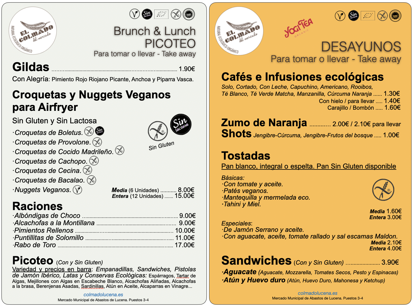 Ubicado en el Mercado Municipal de Abastos de Lucena (puestos 3-4) con fácil acceso y aparcamiento gratuito. Un espacio dedicado a la alimentación sostenible y saludable. Un establecimiento donde encontrarás productos Ecológicos, de Kilómetro 0, Sin Gluten, Veganos o adaptados a diversas intolerancias. Además, combinamos tienda y zona degustación para disfrutar de momentos únicos en buena compañía y picoteo saludable.